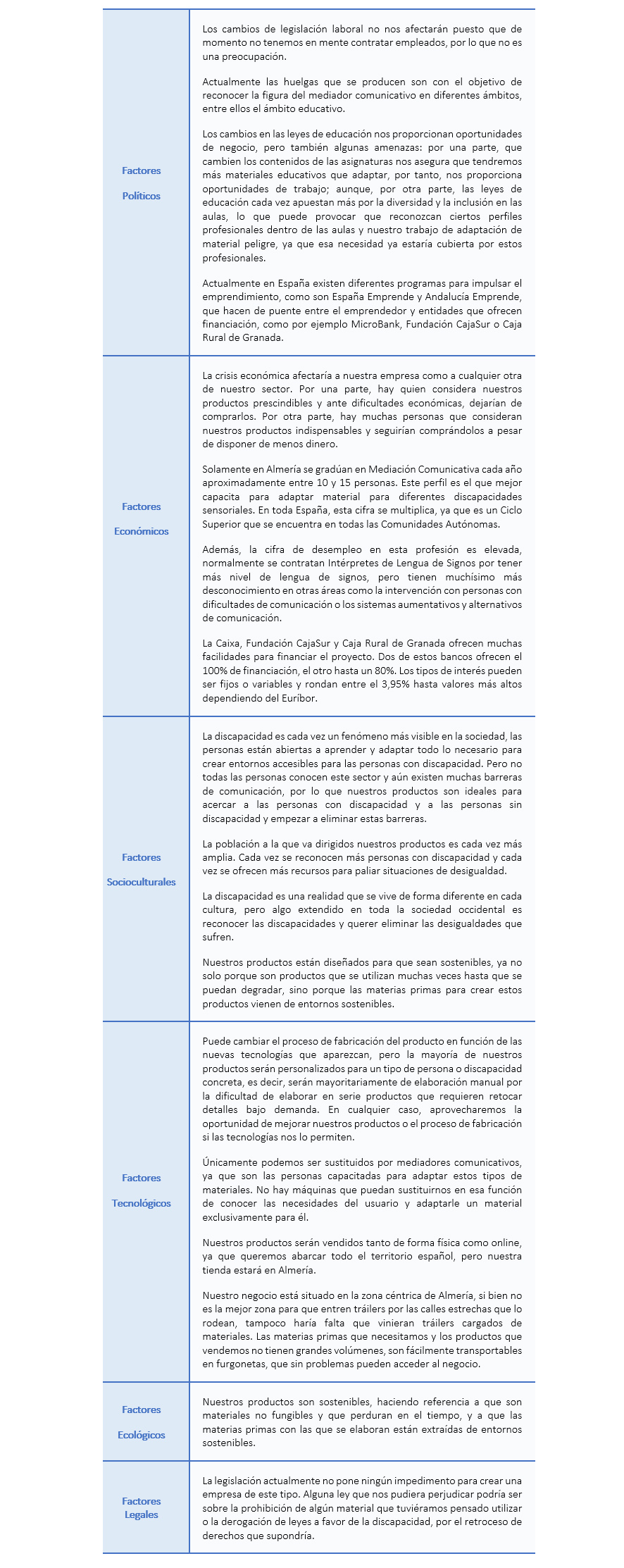 Los factores generales afectan a todas las empresas/proyectos, y los vamos a examinar con el llamado Análisis PESTEL, que hace referencia a los factores Político-Legales, Económicos, Socioculturales, Tecnológicos, Ecológicos (Medioambientales) y Legales.